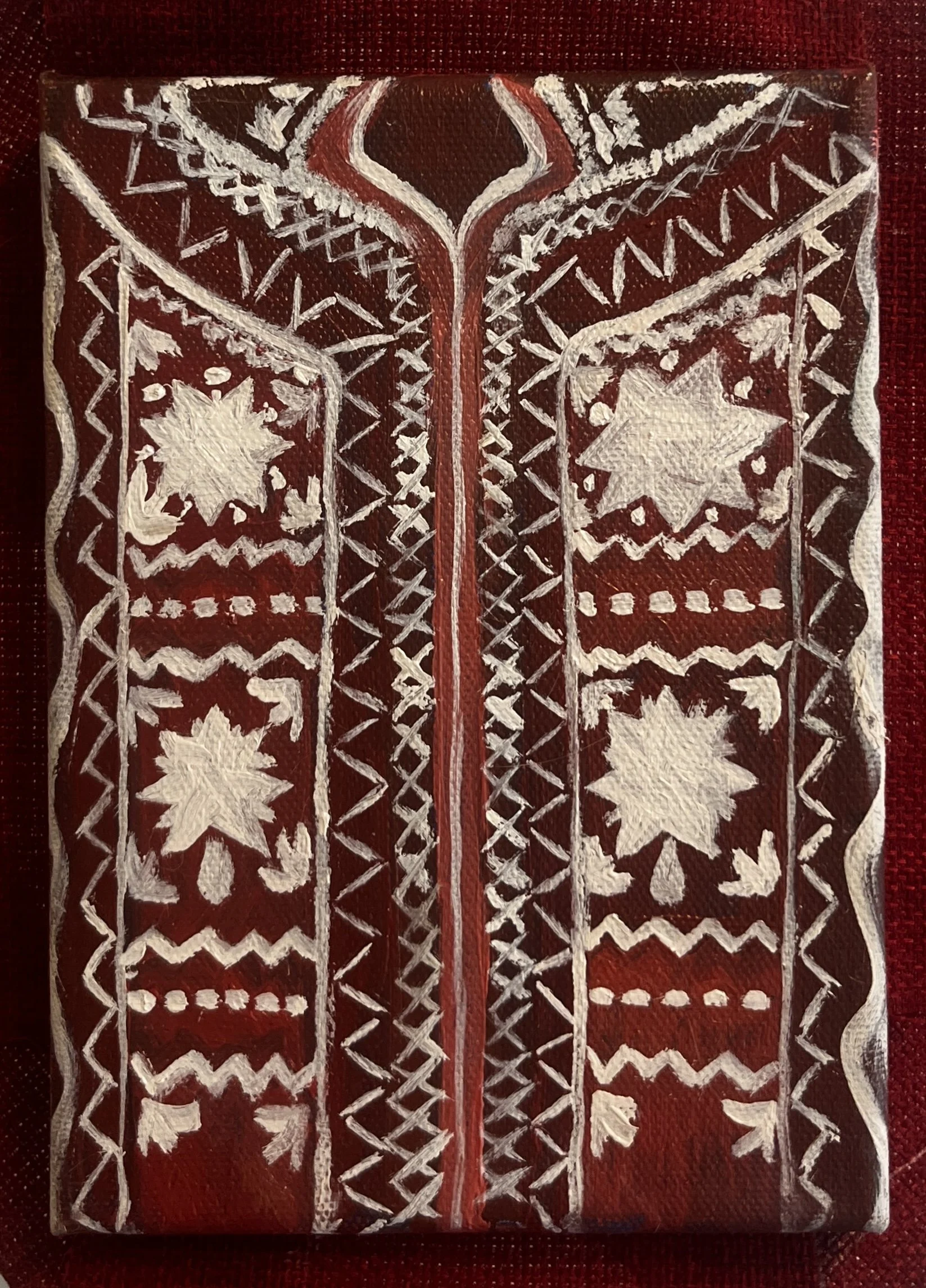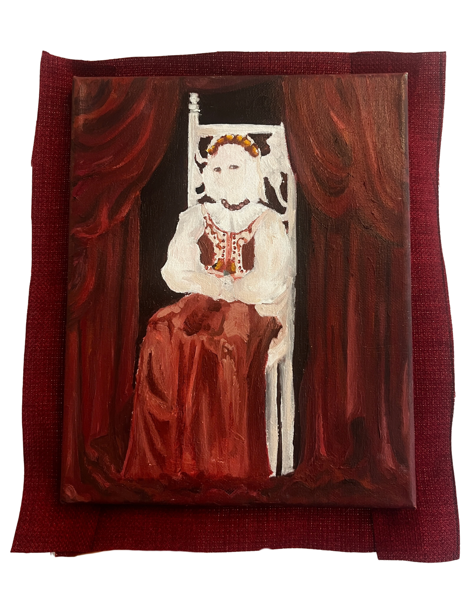 “ja jestem polakiem”, 2025, oil on canvas, fabric,10in x 12in, parts 1&2